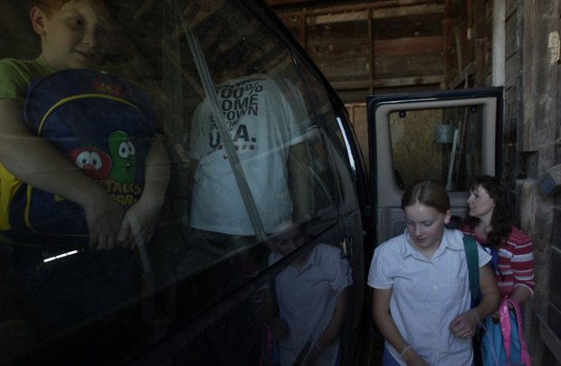 Returning from the library armed with reading material for home-schooling studies Josiah, left, with best friend Matthew Vance, Amanda and Wendy look forward to the next lesson learned.