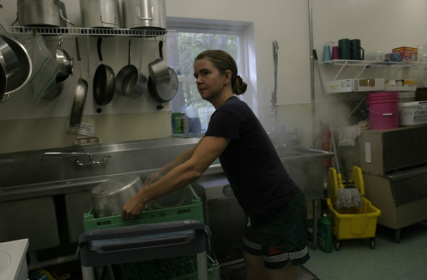 In the kitchen of the Cottage restaurant, Joey prepares the utensils needed for autumn apple-pumpkin jam. It is her own recipe.